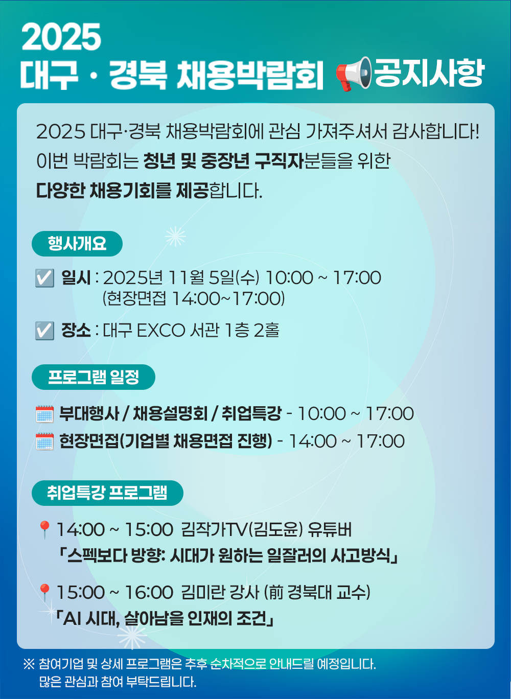 ★ 2025 대구·경북 채용박람회 공지사항 ★