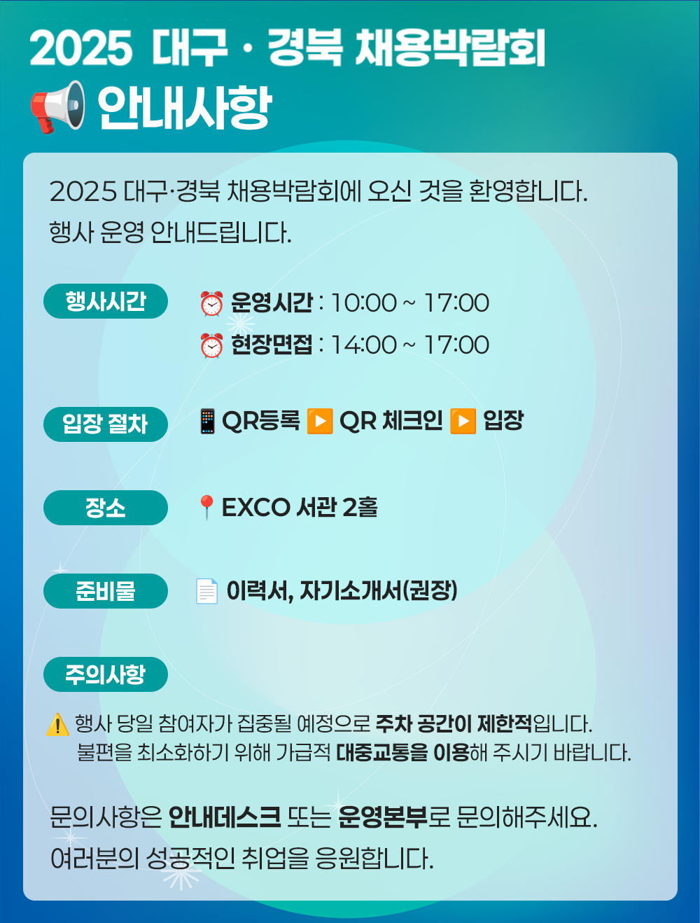 ★ ★ ★ 2025 대구·경북 채용박람회 안내사항 ★ ★ ★